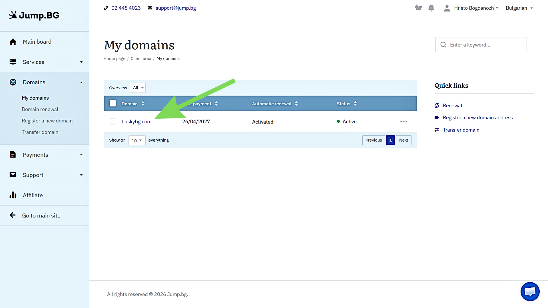 Кликнете върху конкретното име на домейна. Това ще ви отведе до страницата за управление на домейна.