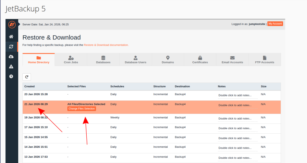 - Отворете секцията за резервни копия (JetBackup).