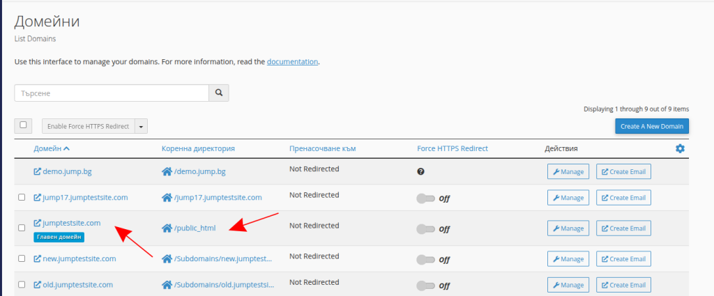 - Отворете секцията за домейни.