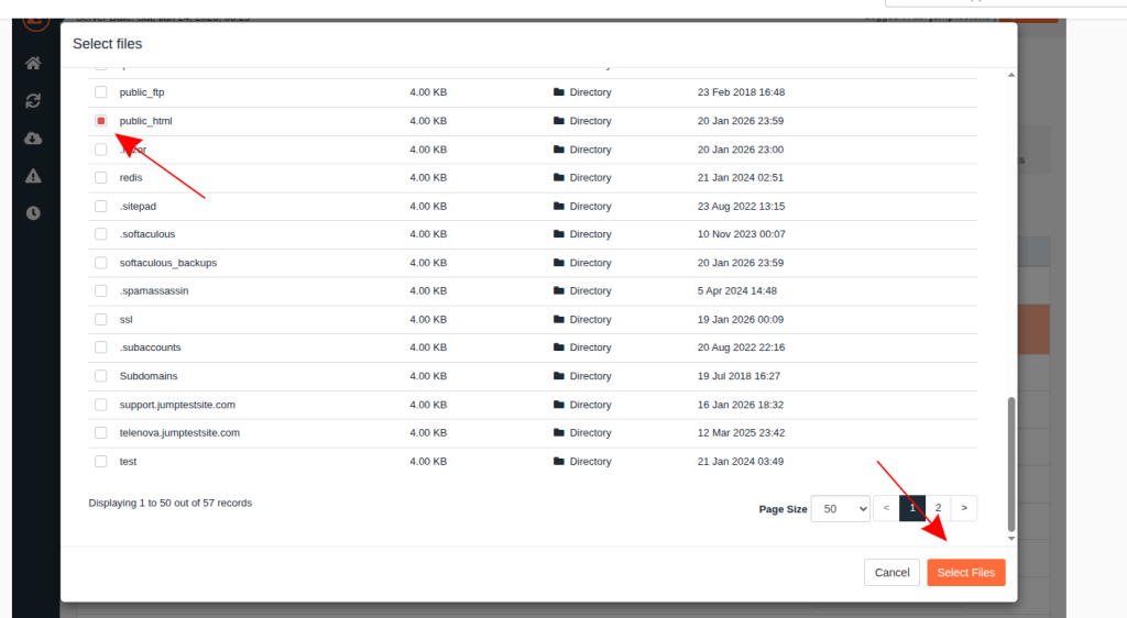 Hint: Ако не сте сигурни коя директория трябва да възстановите, то може да отворите cPanel -> Domains менюто. Там е вписано.