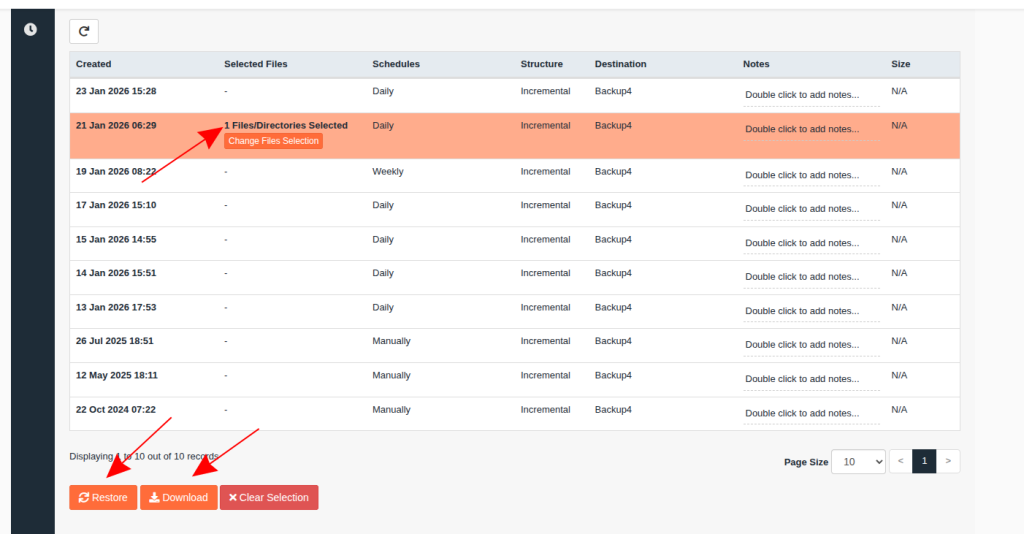 - Изберете дата и изберете бутона “Change Files Selection".